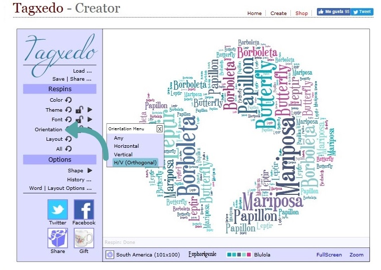 Acá mismo seleccionamos si queremos que las palabras aparezcan en el exterior o en el interior de "la nube" con la opción INVERT.